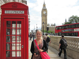 | Kan väll inte bli mera Engelskt! Tele-kiosk, buss, samt Big Ben i bakgrunden. |